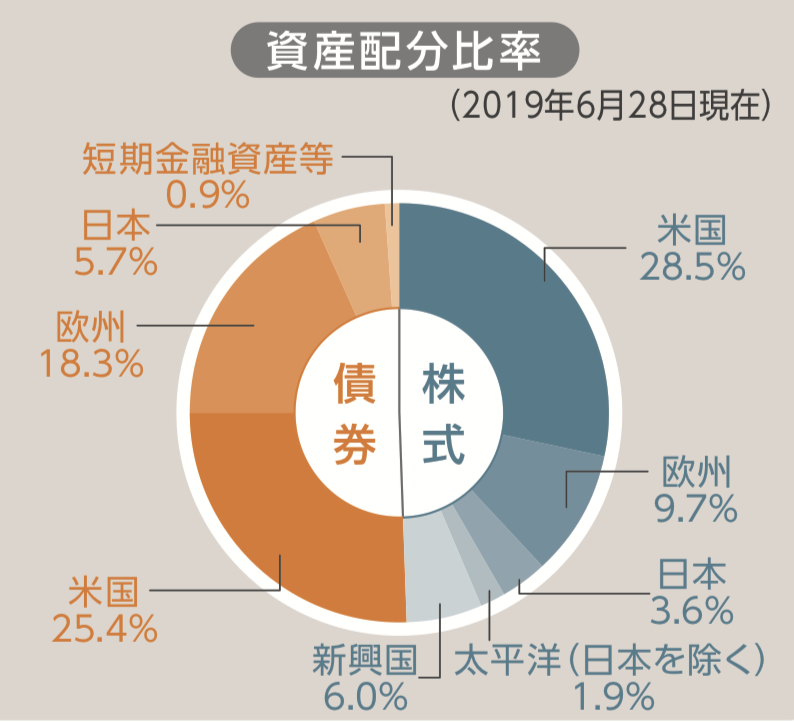 日本にも投資は行いますが、日本投資への比率は低く抑えられています。