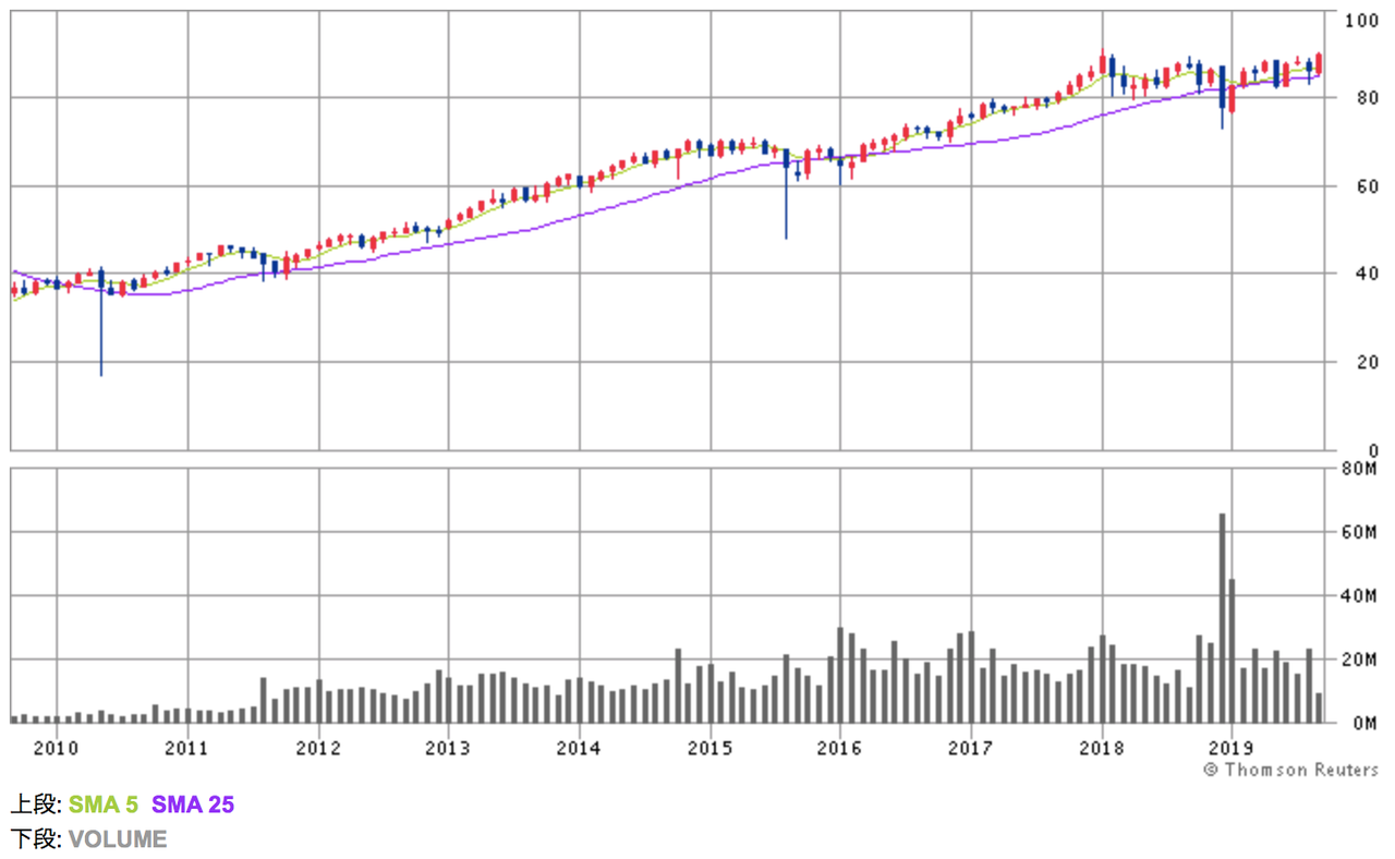 10年前からいると、40ドル未満から、現在は80ドルから90ドルの間まで