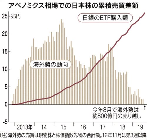 それが19年8月第2週に初めて「売り超」となり、8月末では約800億円の売り越しだった。