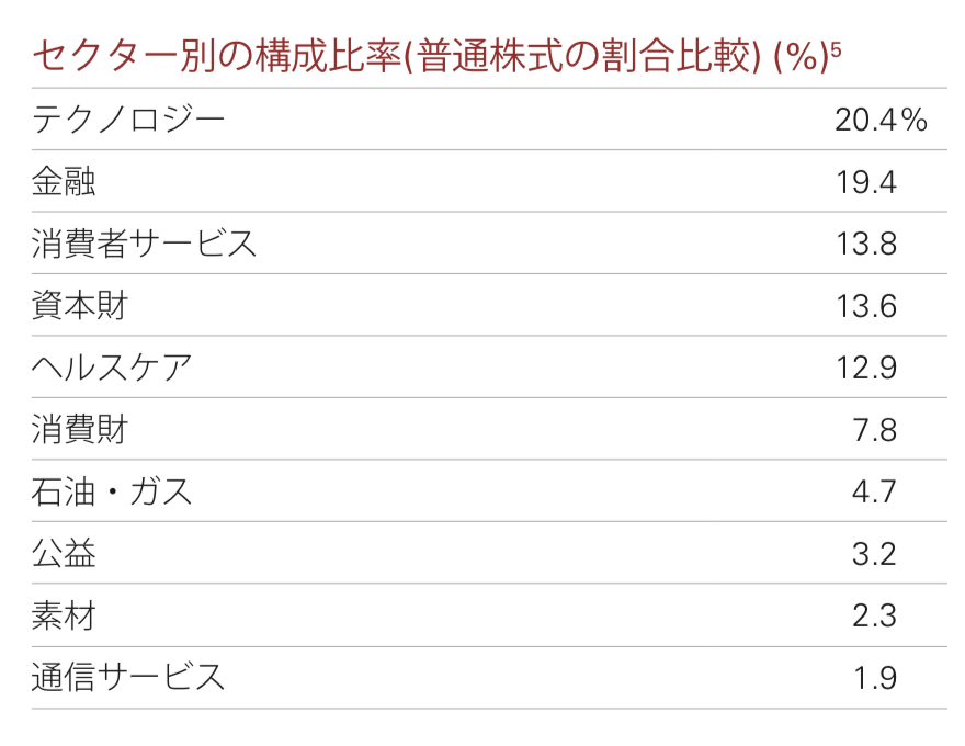 ここでも成長性の高いテクノロジー業界の比率が一番高くなっています。
