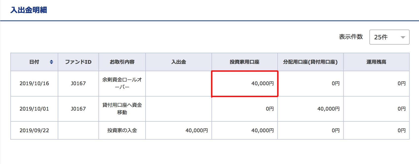 投資用の口座にお金が戻されたことが確認できました。※赤枠のところです。