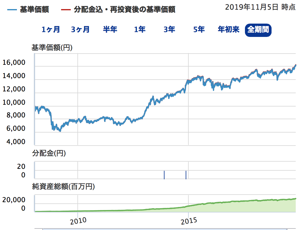 インデックスファンドですから、順当に基準価格をあげてきています。