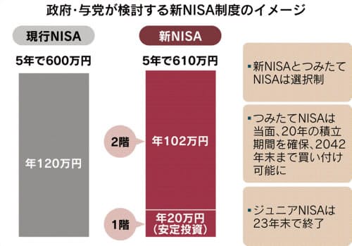 NISA投資、2階建てに 低リスク商品に20万円枠 24年に刷新